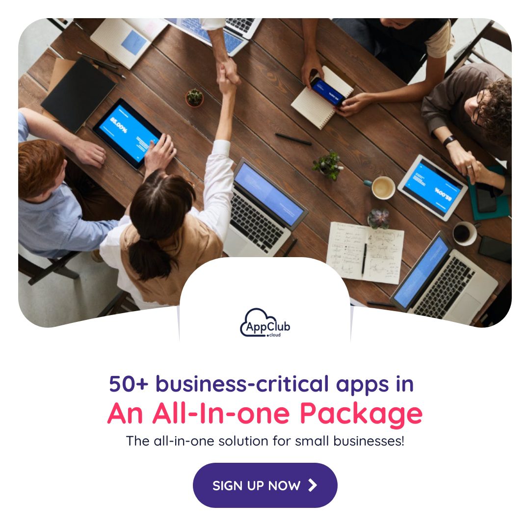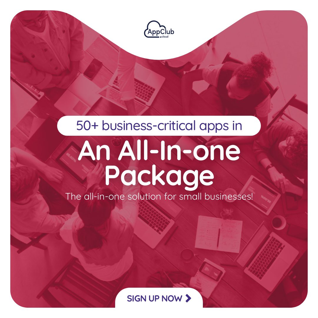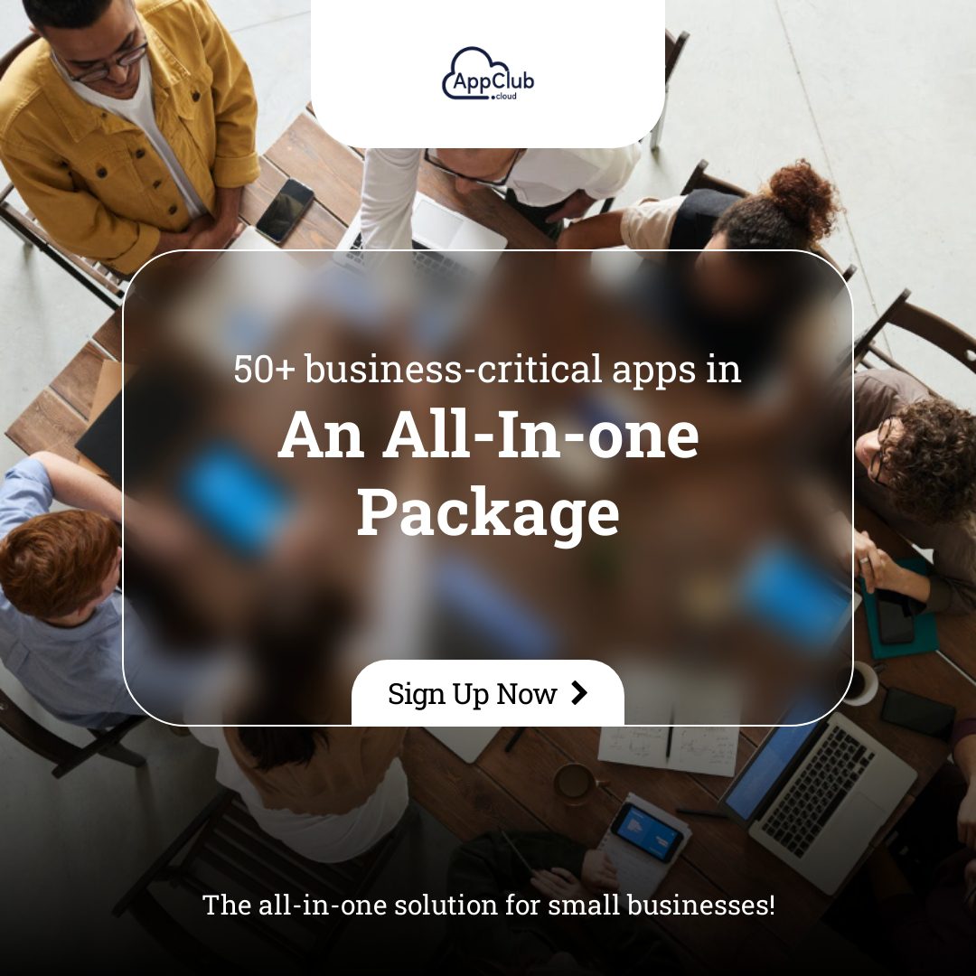 "10x your business productivity with a powerful bundle of 50+ business-critical apps! Save hundreds of dollars that you are spending on business apps with AppClub. Sign Up Today!"