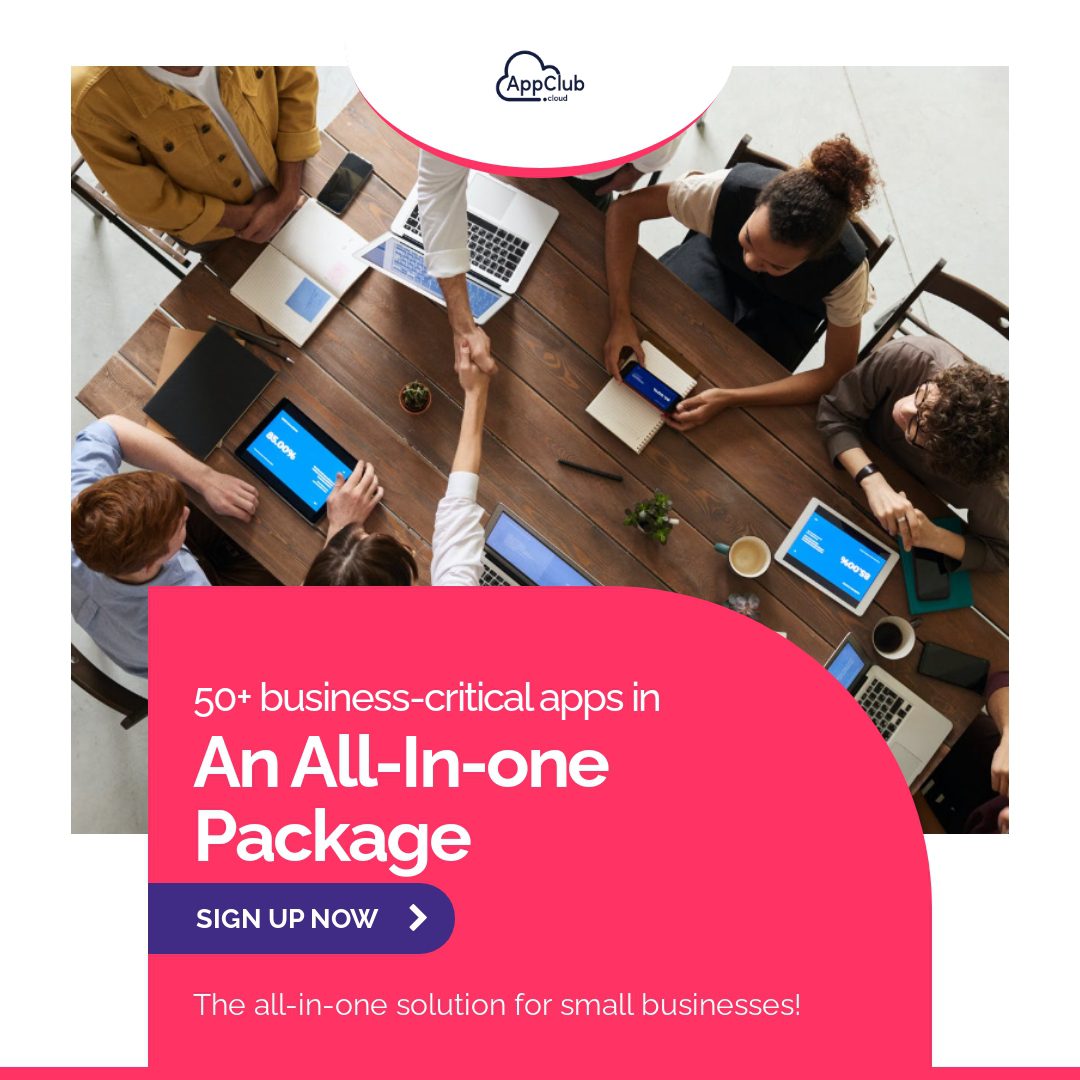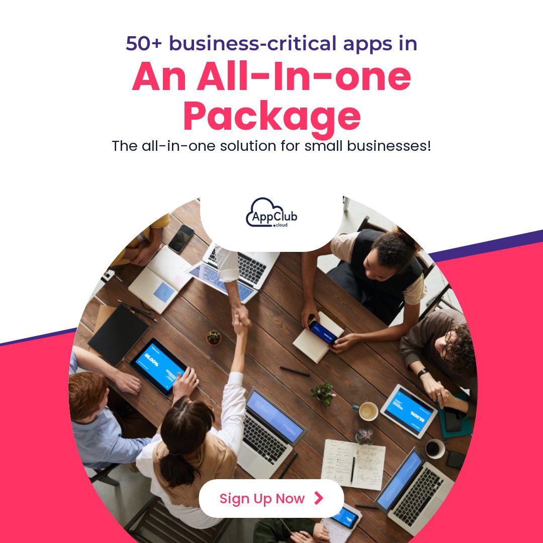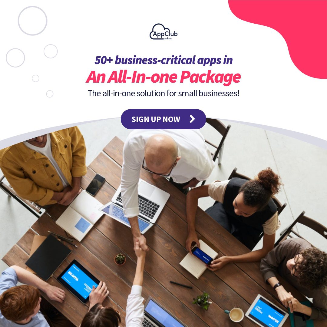 "10x your business productivity with a powerful bundle of 50+ business-critical apps! Save hundreds of dollars that you are spending on business apps with AppClub. Sign Up Today!"